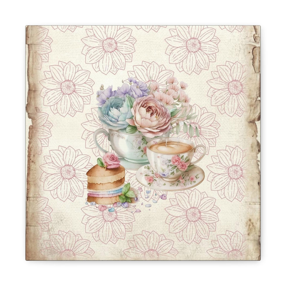 Shabby French Country Tea Canvas Art Print Victorian Teacups Pastel Flowers