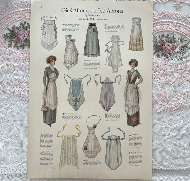 Vintage Fashion Art, Tea Aprons, Edwardian Woman's Hats, Dresses
