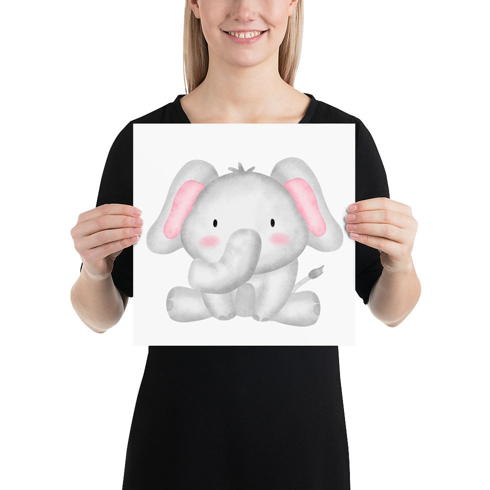Children's Nursery Decor, Adorable Boho Baby Elephant Watercolor Art Print