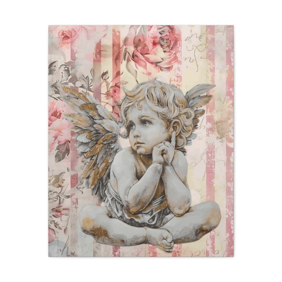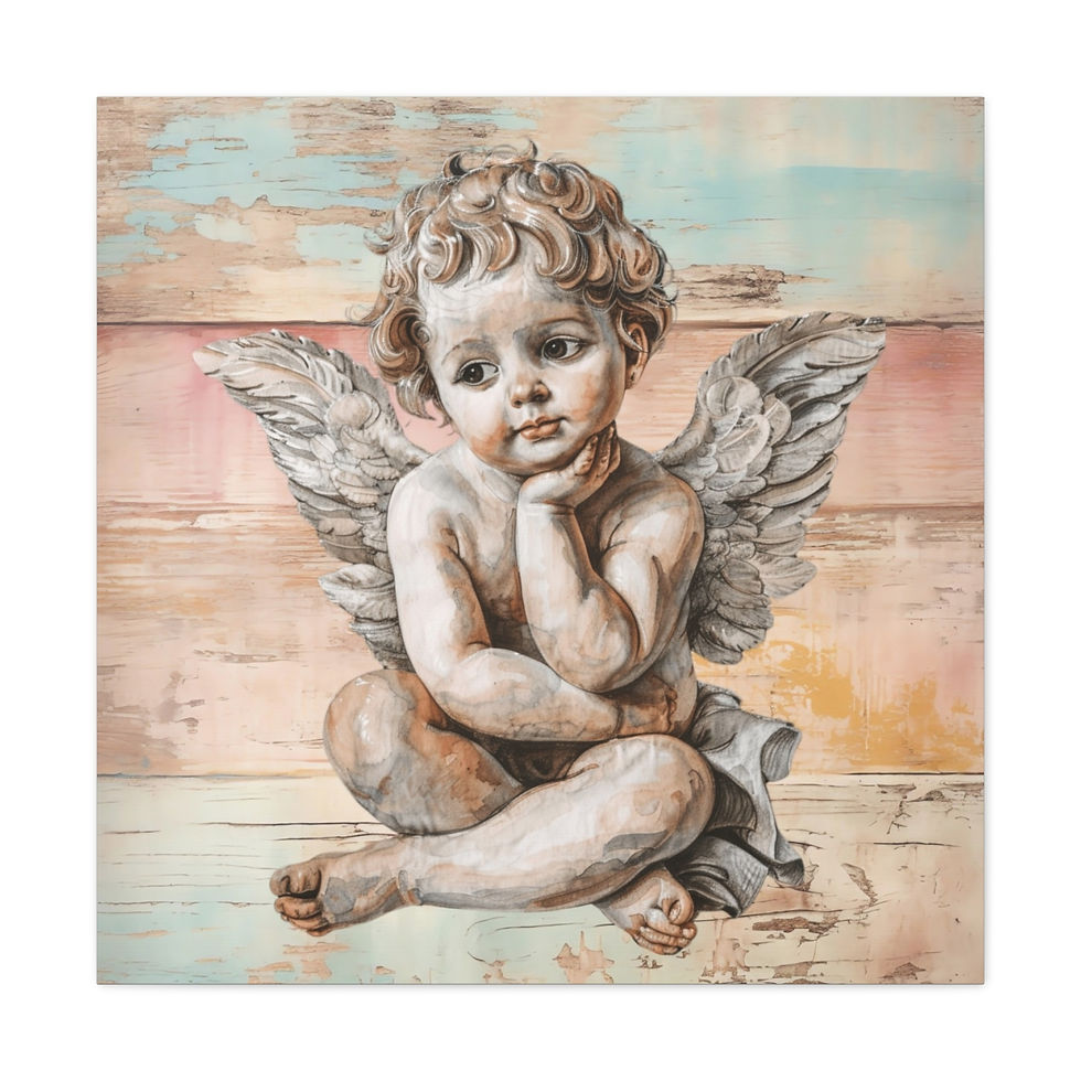 Shabby French Angel Canvas Art Pastel Vintage Distressed Pondering Cherub Decor