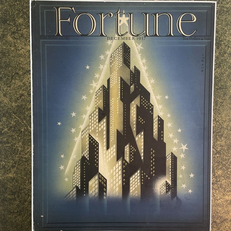 1937 Fortune Magazine Cover Art, Christmas Skyscraper, Binder