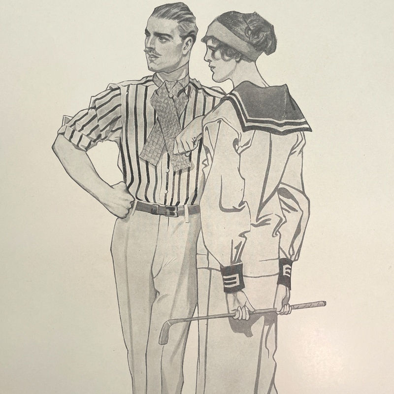 Vintage Edward Penfield Art Print, Golf Couple, Art Deco, Golfing