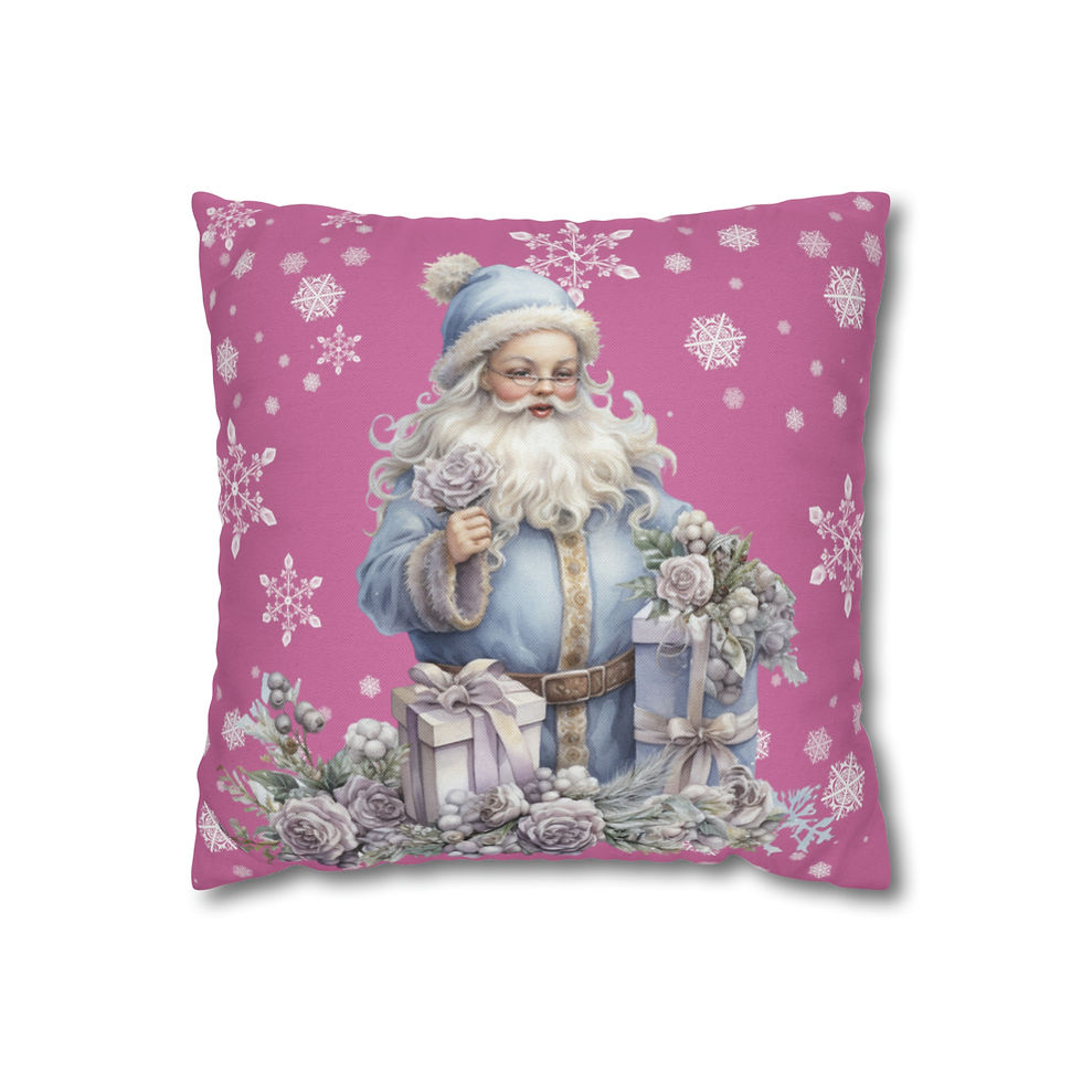 Vintage Christmas Decor Pink Shabby Chic Santa Claus Artistic Throw Pillow cover
